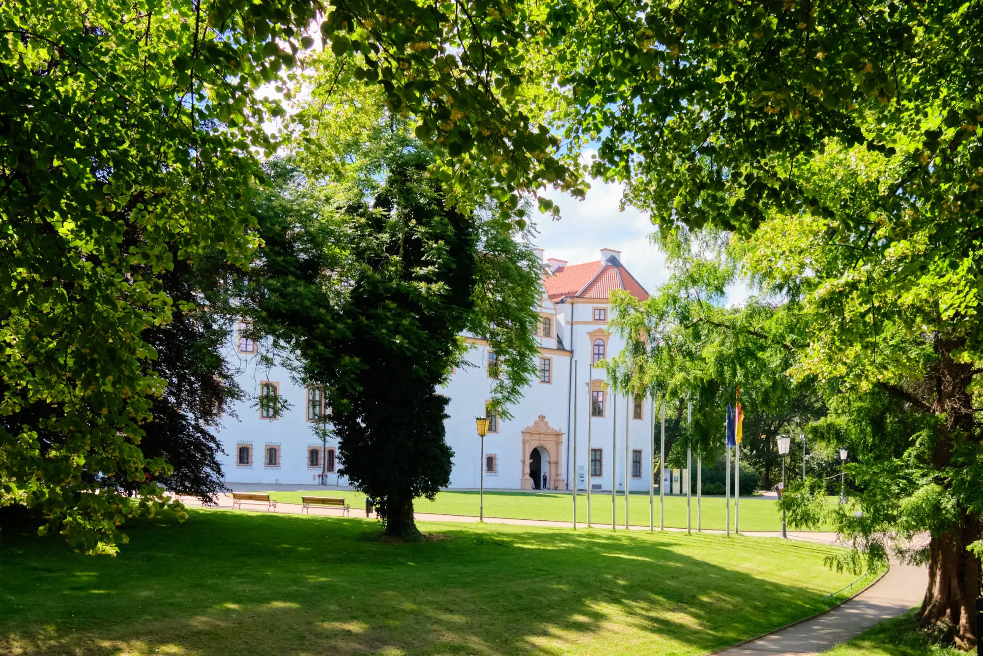 Sehenswert ist auch die Schlosskapelle. Sie gilt als das einzige Gotteshaus in Deutschland aus frühprotestantischer Zeit, das komplett im Stil der Renaissance erhalten ist. Die reich verzierte Kapelle mit Bildern und Malereien aus der Zeit um 1570 wird zum Schutz der Kunstwerke nur selten geöffnet. Wir konnten als Besucher durch eine Glasscheibe einen Blick ins Innere werfen. Bertreten konnten man den Raum leider nicht, da das Raumklima kontrolliert wird.
